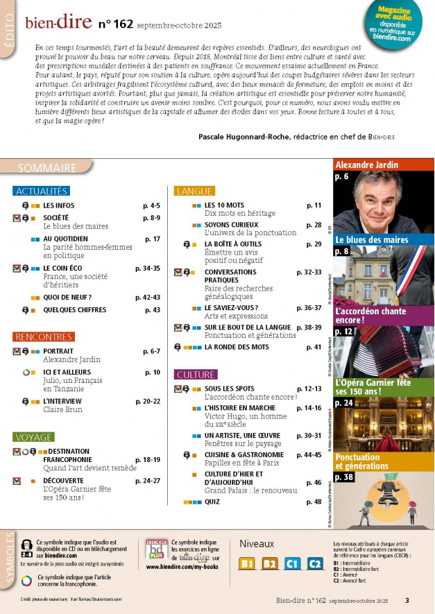Published six times a year, Bien-dire not only helps you improve your fluency, it also helps you understand what it is to be French.