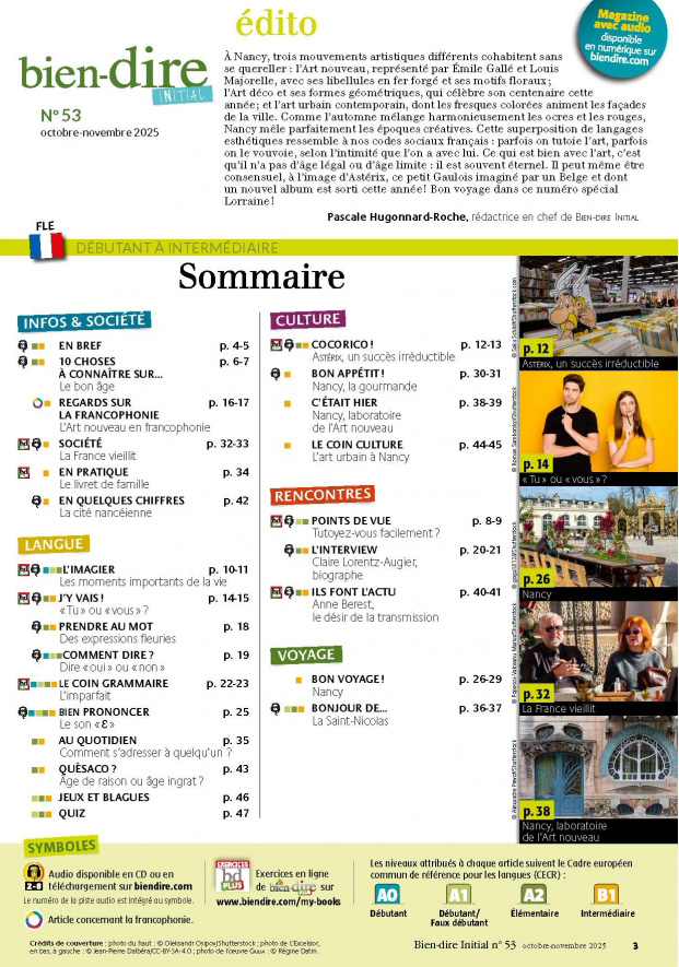Published six times a year, Bien-dire Initial not only helps you improve your fluency, it also helps you understand what it is to be French.